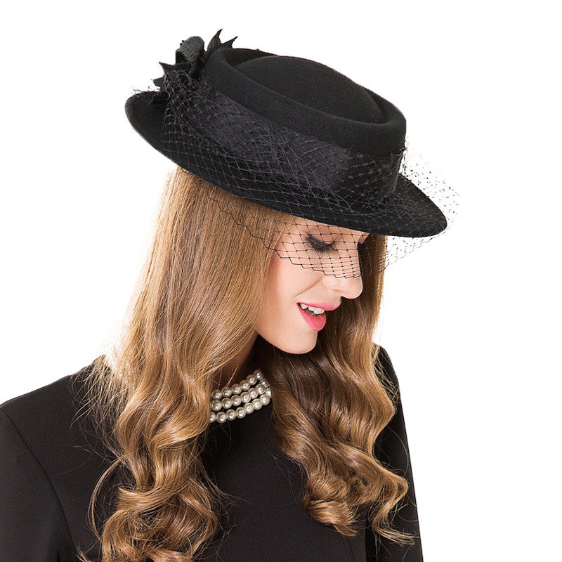 VECRY Damen Panama Hut - Wollfilz Hut Mit Breiter Krempe Für Festliche Anlässe