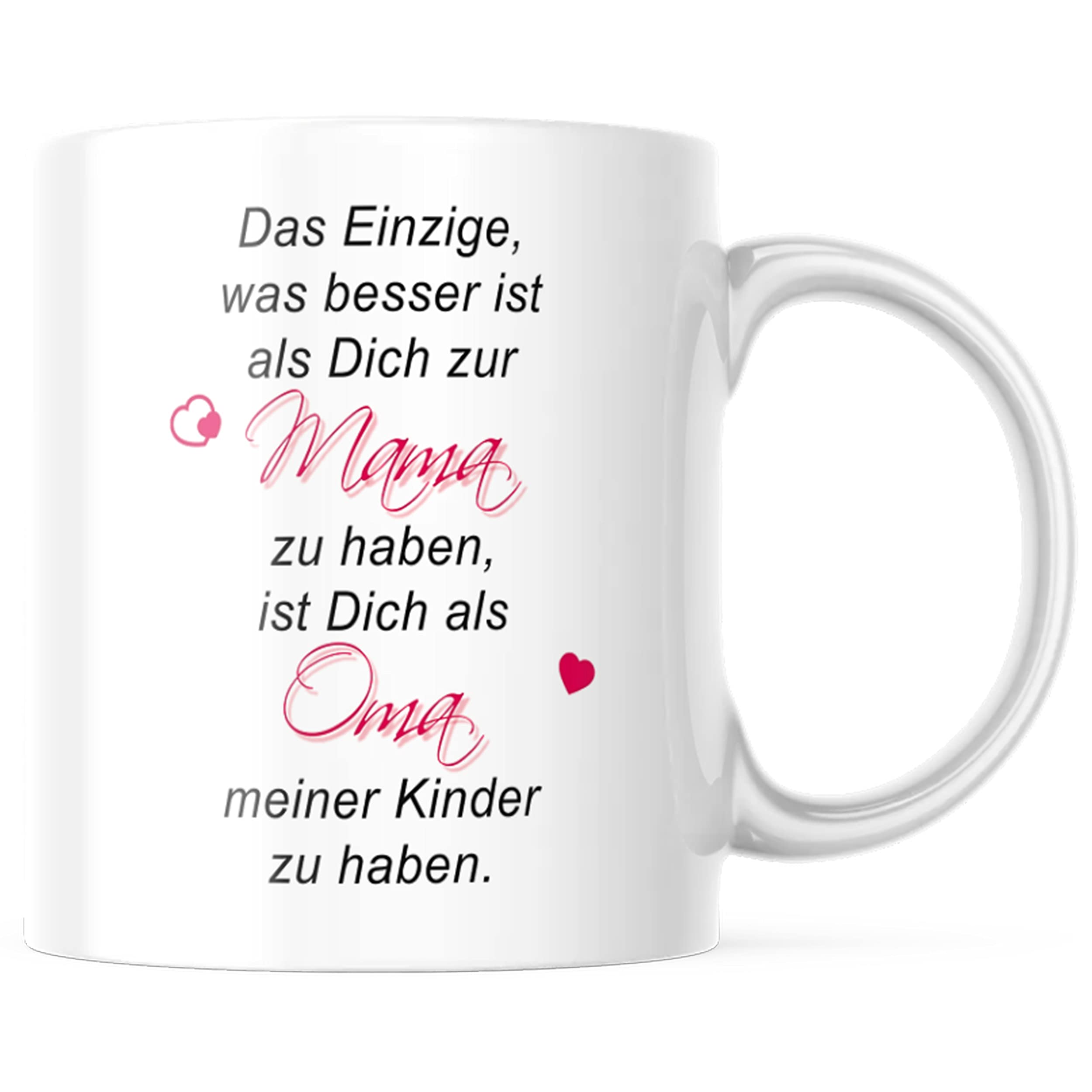 Oh man, diese Papa-Tasse bringt einen echt zum Schmelzen! Der Spruch 'Das einzige was besser ist als Dich zum Papa zu haben... ist Dich als Opa meines Kindes zu haben' ist einfach nur herzerwärmend. Perfekt für alle, die ihrem Papa oder Opa mal richtig Danke sagen wollen.\\n\\nDie Tasse ist nicht nur emotional, sondern auch qualitativ absolut top: Aus hochwertiger Keramik, beidseitig bedruckt und sowohl spülmaschinen- als auch mikrowellengeeignet. Der Druck löst sich garantiert nicht ab - das haben wir ausgiebig getestet!\\n\\nAls Geschenk einfach perfekt für: Vatertag, Geburtstage, Weihnachten oder einfach mal so als Überraschung. Mit 330 ml Fassungsvermögen ist sie übrigens schön großzügig dimensioniert - da passt ordentlich Kaffee oder Tee rein.\\n\\nMaterial: Hochwertige Keramik\\nFassungsvermögen: 330 ml\\nBesonderheit: Beidseitiger Druck\\nEignung: Spülmaschine & Mikrowelle\\n\\nIch habe sie meinem Papa zum letzten Vatertag geschenkt und er war total gerührt! Die Tasse liegt super in der Hand und die Qualität stimmt einfach. Made in Germany - da weiß man, was man hat. Absolut empfehlenswert für alle, die ihrem Papa eine Freude machen wollen!