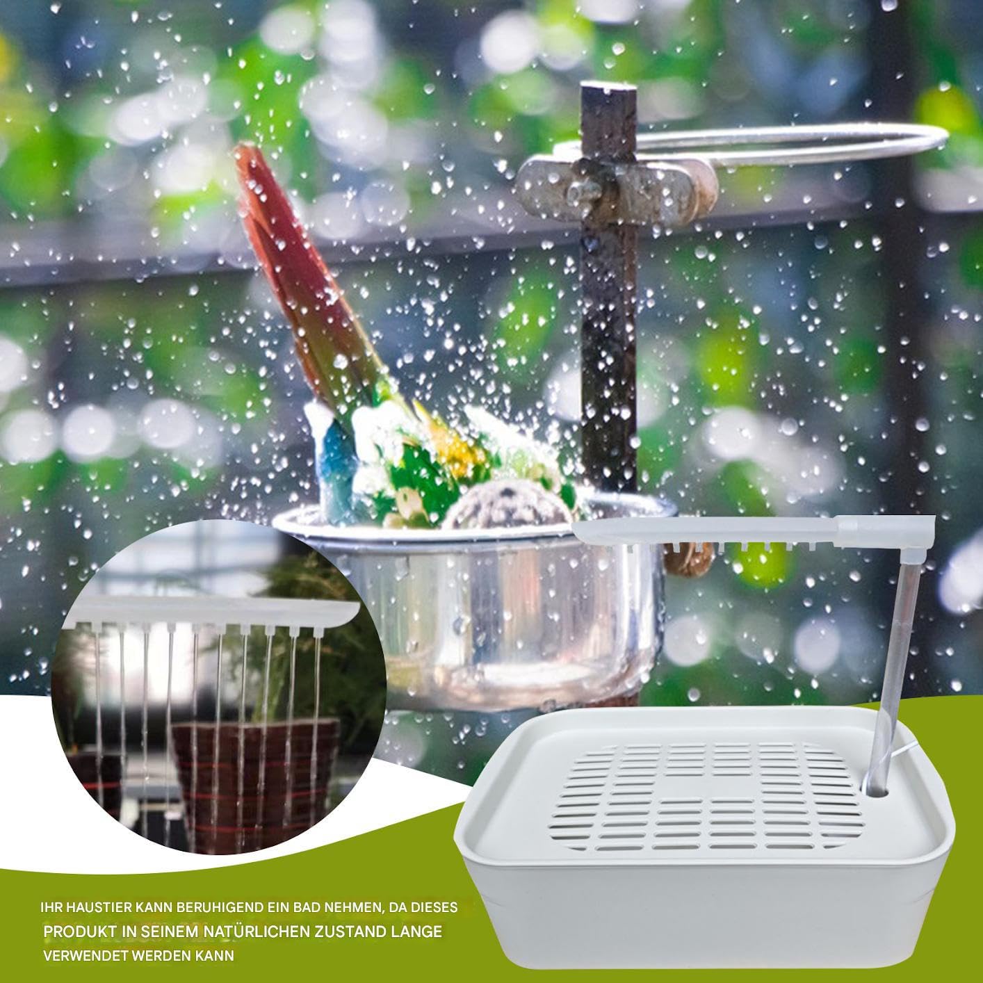 Spaß beim Baden für deine gefiederten Freunde! Diese elektrische Vogel-Dusche simuliert sanften Regen - genau wie in der Natur. Deine Vögel werden das erfrischende Bad lieben! 🦜\\n\\nEinfach per USB betreiben und das sanfte Wasserplätschern genießen. Aus robustem ABS-Material und leicht zu reinigen. Perfekt für Sittiche, Wellensittiche und andere Ziervögel.\\n\\nDeine Vögel bleiben sauber und gesund, während sie sich natürlich austoben können. Badespaß garantiert! 💦\\n\\n• Maße: 33x22x26cm\\n• Material: ABS\\n• USB-Betrieb\\n• Sanfte Wasserströmung\\n• Einfache Reinigung