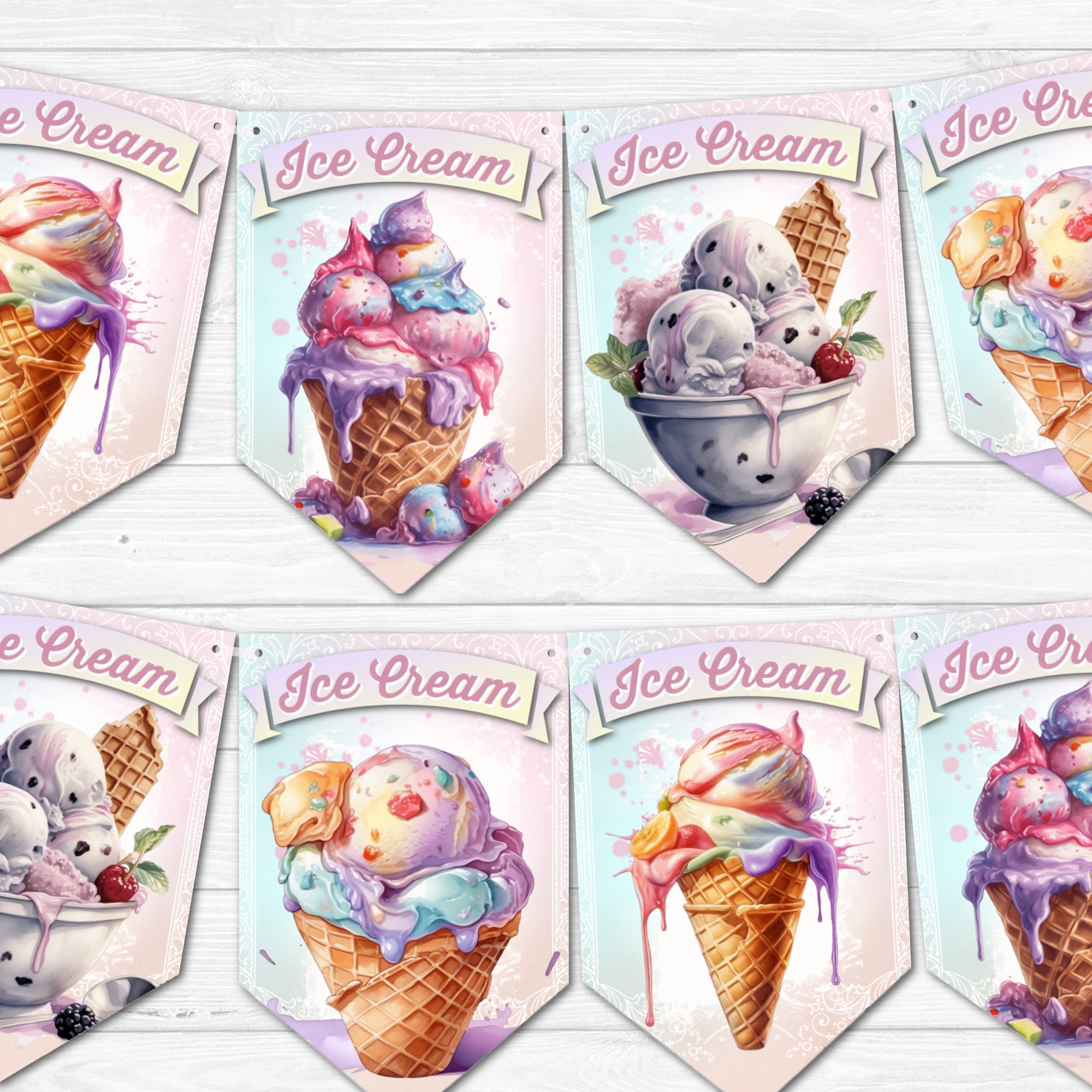 Eiscreme Wimpelkette Papier - Cremefarbene Geburtstagsdeko Mit Zugflaggen