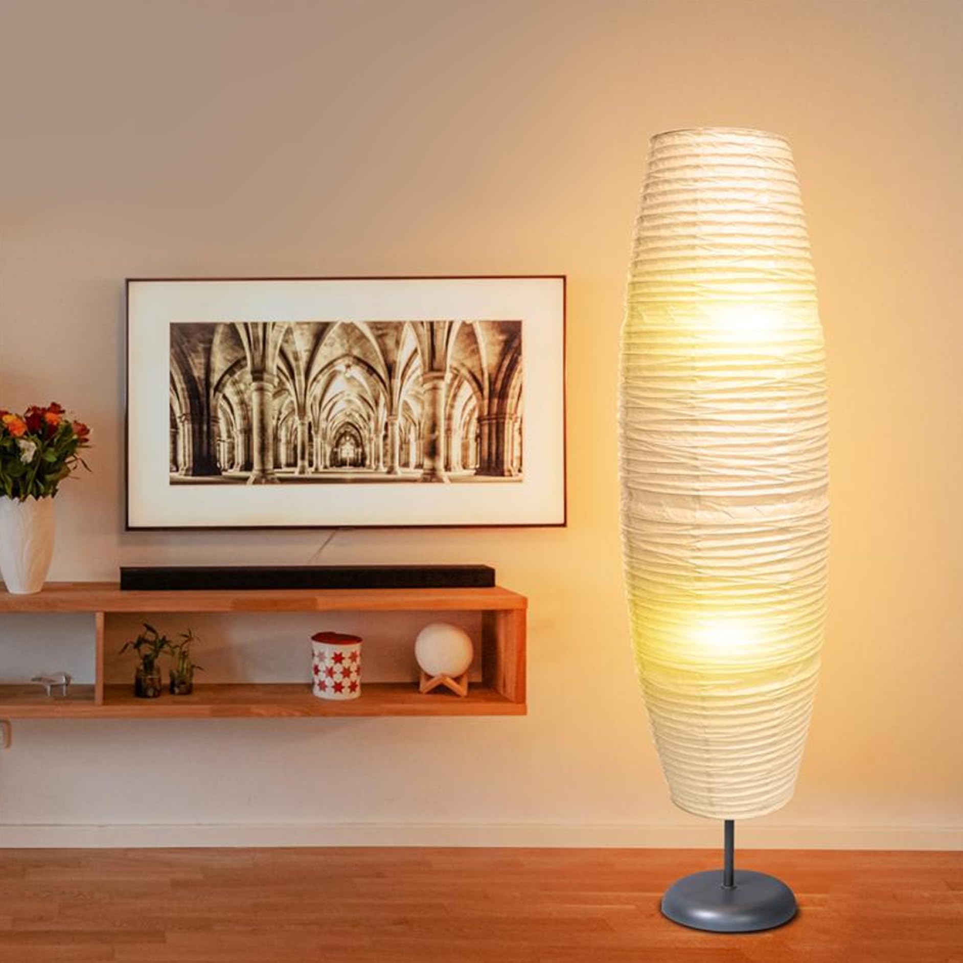Wow, dieser Papierlampenschirm ist genau das Richtige, wenn du deiner alten Stehlampe neuen Schwung verpassen willst! Mit 47 Zoll (ca. 120cm) Länge ist er schön großzügig und macht was her. Aus leichtem Papier gefertigt, verbreitet er ein super weiches, gemütliches Licht - perfekt zum Entspannen oder Lesen. Das minimalistische Design in Weiß passt zu fast jedem Einrichtungsstil und sieht total zeitlos aus. Der Clou: Du musst nicht gleich eine neue Lampe kaufen, sondern kannst einfach nur den Schirm wechseln. Der passt auf die meisten Standard-Stehlampen und ist ratzfatz montiert. Das Papier ist überraschend langlebig und sorgt für eine warme, einladende Atmosphäre. Ob im Wohnzimmer, Schlafzimmer oder Büro - mit diesem Schirm wird's gleich viel gemütlicher! Einfach auspacken, auf die Lampe stecken und schon hast du einen komplett neuen Look. So einfach kann Wohnungsaufhübschen sein!