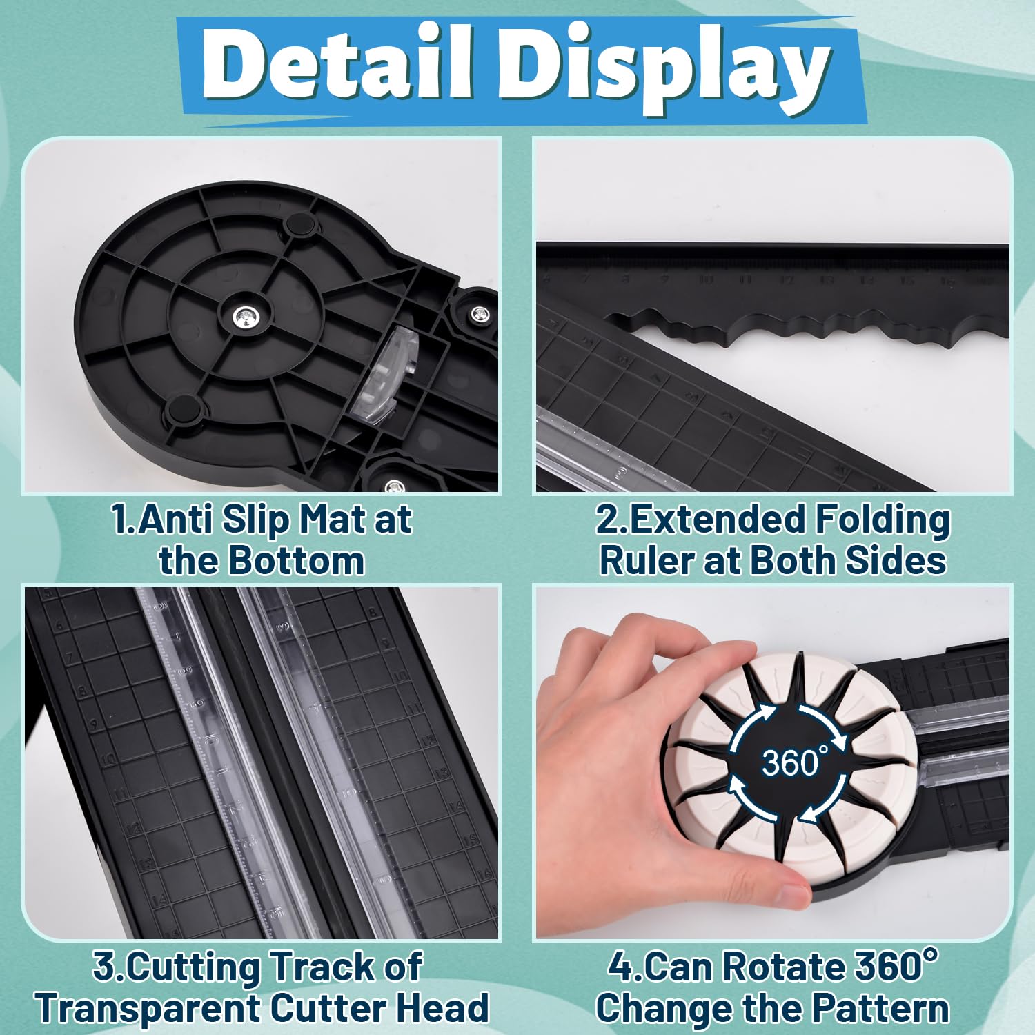 Bastelfreude pur! Dieser 12-in-1 Papierschneider in hübschem Rosa ist dein neuer kreativer Partner. Mit zwölf verschiedenen Mustern - von geraden Linien über Wellen bis zu gepunkteten Mustern - kannst du deine Bastelprojekte aufpeppen. Die rotierende Scheibe macht den Wechsel zwischen den Mustern super einfach. Die seitlichen Lineale helfen dir bei präzisen Messungen, und die Anti-Rutsch-Füße sorgen für Stabilität beim Schneiden. Ob Grußkarten, Scrapbooking, Einladungen oder Origami - hier wird jedes Papierkunstwerk zum Erfolg! Mit 46,8cm Länge perfekt für größere Projekte. Einfach zu bedienen, auch für Bastelanfänger geeignet. Mach deine Bastelstunden noch kreativer und spaßiger - mit diesem Alleskönner!