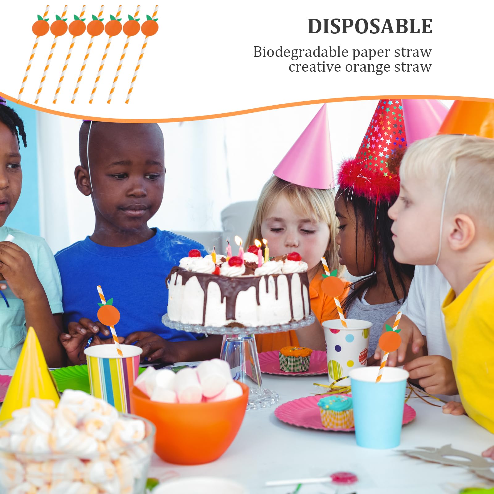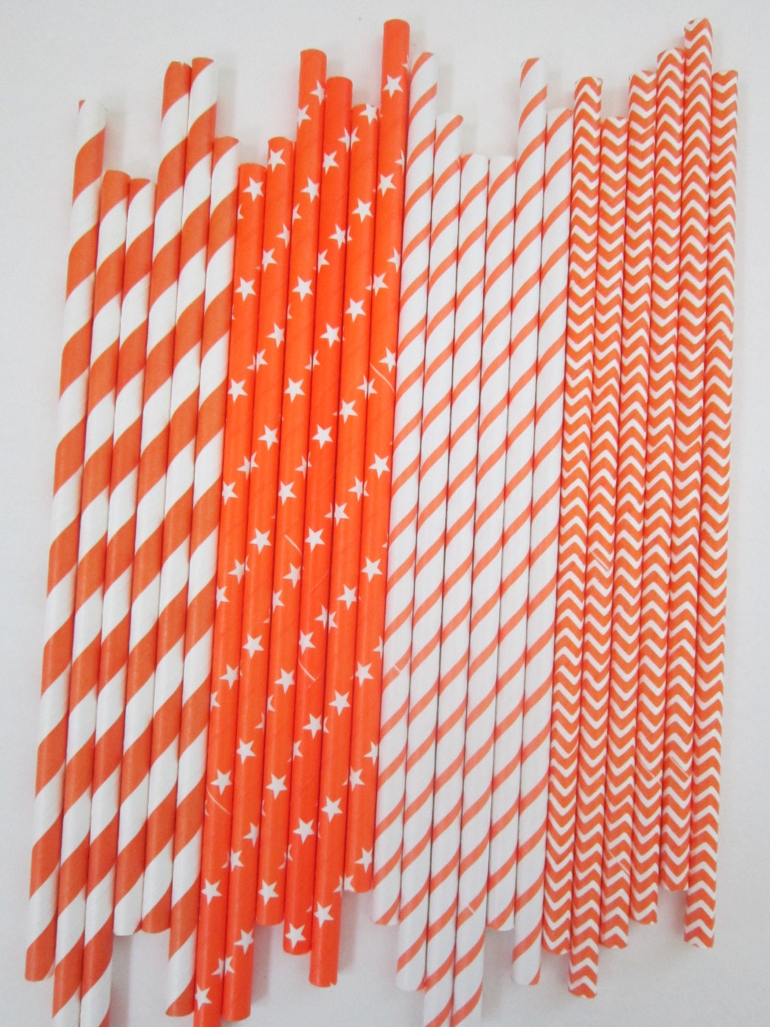 50 Stück Papierstrohhalme Orange - Lustige Trinkhalme Für Partys