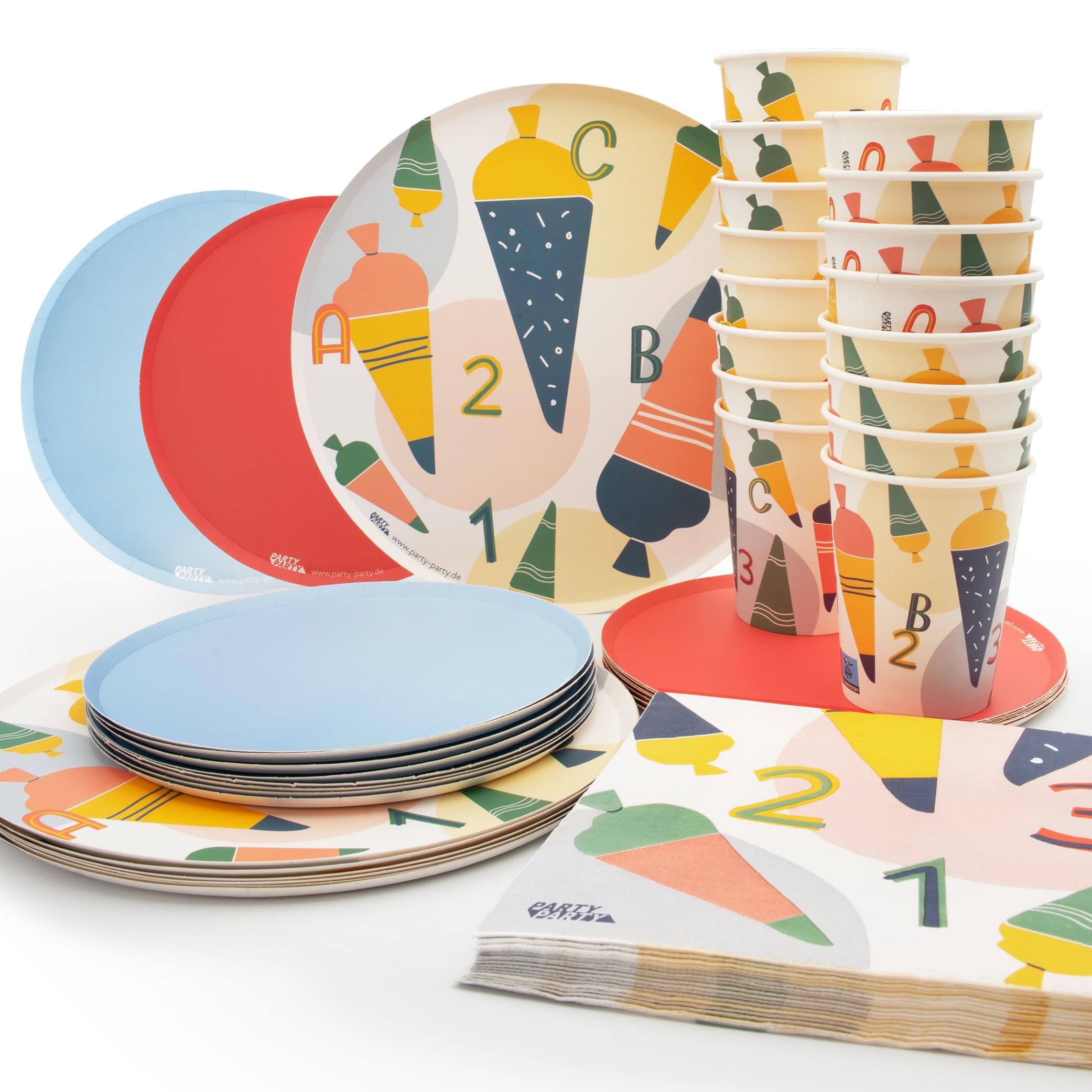 Perfekt für die Einschulung! Diese 8 bunten ABC-Pappteller bringen Schulfreude auf jeden Partytisch. Mit 23cm Durchmesser genug Platz für Kuchen, Obst oder Snacks. Das fröhliche Design mit Buchstaben und Stiften begeistert kleine ABC-Schützen. Aus stabilem, beschichtetem Karton - halten auch feuchte Speisen problemlos aus. Super für die Einschulungsfeier, Vorschulparty oder einfach als Überraschung für kleine Lernfans. Macht jedes Fest bunter und fröhlicher! Einfach mit passenden Bechern und Servietten kombinieren für ein stimmiges Gesamtbild. Perfekt für Familienfeiern oder kleinere Schulfeste. Dein Kind wird sich über die persönliche Deko riesig freuen! Einfach decken und die Party kann beginnen!