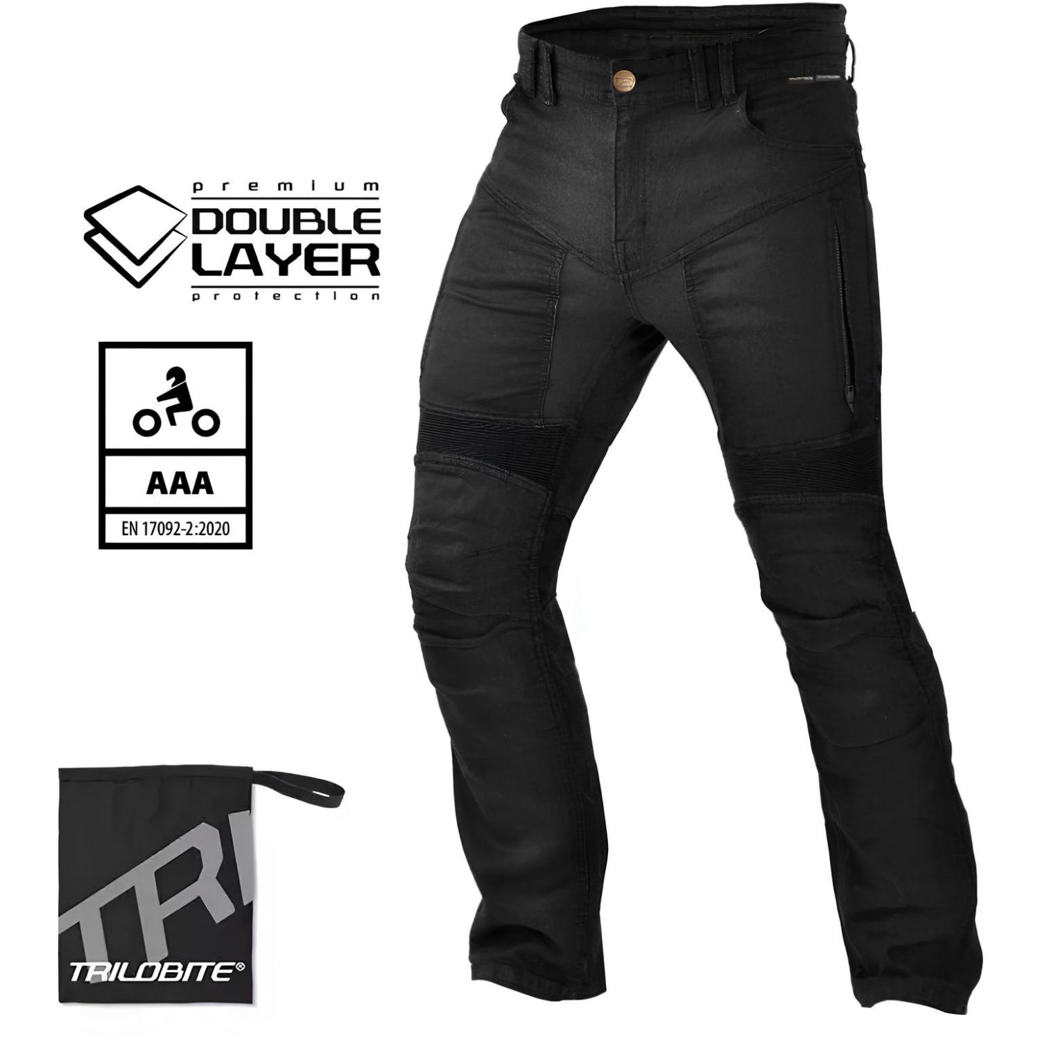 Stylish und sicher - diese Trilobite Parado Jeans beweist, dass Schutz nicht langweilig sein muss! Mit höchster CE AAA Zertifizierung für maximale Sicherheit. Die Slim Fit Passform sitzt perfekt und die Stretch-Einsätze an Knien, Schritt und Rücken geben dir volle Bewegungsfreiheit. Herausnehmbare CE LEVEL 2 Protektoren an Knien und Hüften - individuell einstellbar für perfekten Sitz. Aus 98% Baumwolle und 2% Elastan - robust und bequem zugleich. Mit Belüftungstaschen an den Oberschenkeln und atmungsaktivem Einsatz im Schritt. Inklusive wasserdichter Transporttasche. Für die moderne Bikerin, die Wert auf Style und Sicherheit legt!