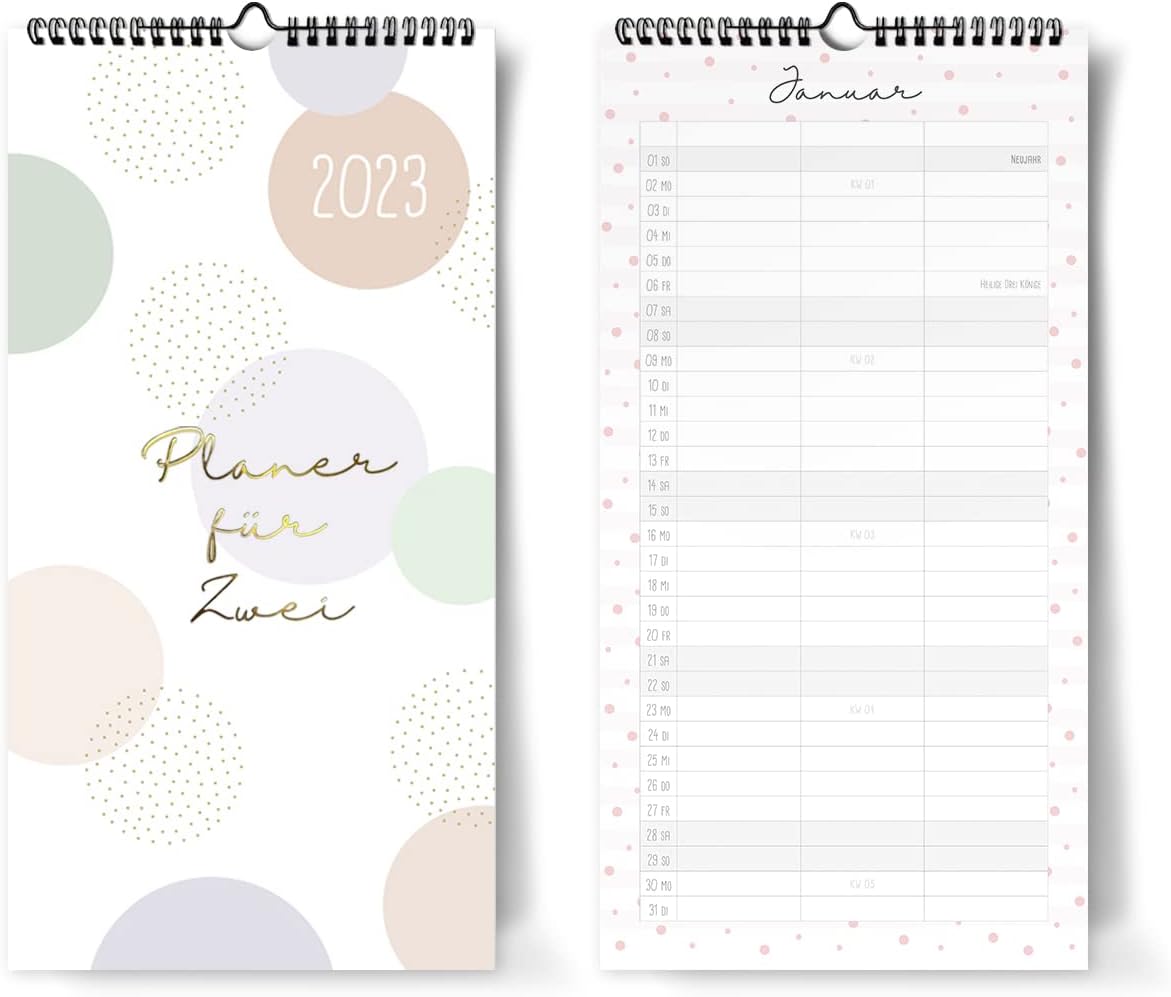 Gemeinsam planen macht mehr Spaß! Dieser stylische Partnerkalender für 2026 hat zwei Spalten - da hat jeder seine eigene Seite für Termine und To-Do's. Mit 20x32cm ist er perfekt für die Wand und sieht dazu noch richtig gut aus. Das hochwertige, ungestrichene Papier (170g/m²) nimmt jede Tinte super an, ohne zu verschmieren. Besonders praktisch: Die Extraseiten für Urlaubsplanung und die Jahresübersicht! Die Spiralbindung macht das Umblätter leicht, und das ganze Ding wird nachhaltig in der EU produziert. Endlich kein Terminchaos mehr - ob für Beruf, Familie oder Hobbys, hier behaltet ihr den Überblick!