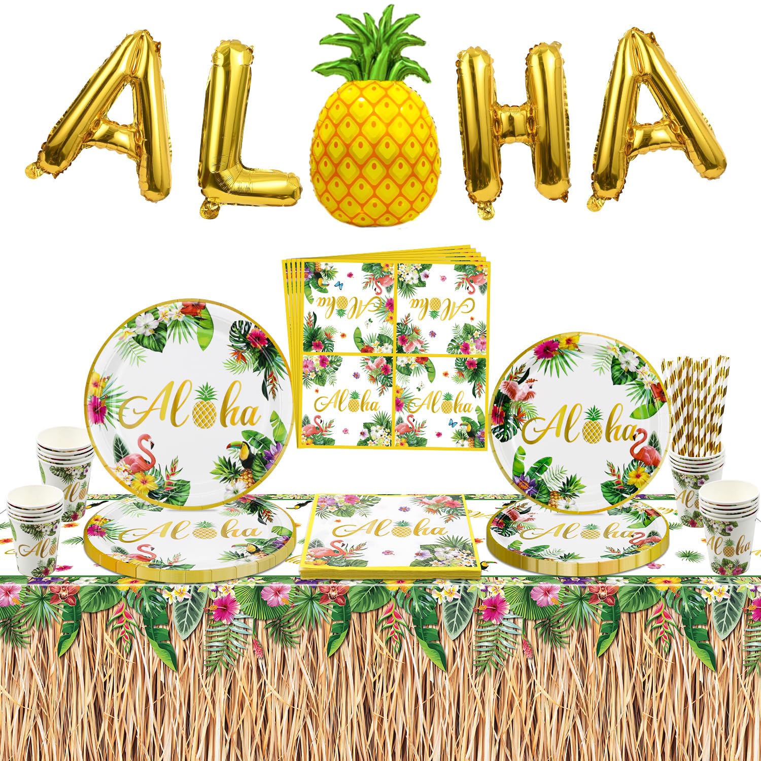 Aloha! Verwandele deine Party in ein tropisches Paradies mit diesem 60-teiligen Luau-Set. Enthält alles für 20 Gäste: 20 Essteller (23cm), 20 Dessertteller (18cm) und 20 Servietten mit hawaiianischem Design.