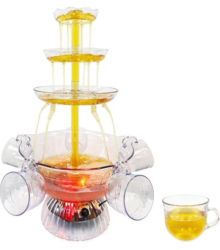 Der Hit auf jeder Party! Dieser 3-stufige Getränkebrunnen mit LED-Beleuchtung fasst bis zu 3 Liter - ideal für Punsch, Cocktails oder Saft. Inklusive 5 wiederverwendbaren Bechern und Reinigungsbürste. Einfache Bedienung mit Kippschalter. Die LED-Lichter sorgen für stimmungsvolle Beleuchtung. Perfekt für Geburtstage, Hochzeiten oder Gartenfeste. Einfach zu reinigen - die einzelnen Teile lassen sich leicht demontieren. Mach deine Feier unvergesslich!