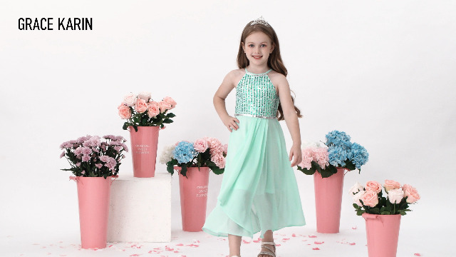 Wow, dieses Kleid lässt Mädchenherzen höher schlagen! Das GRACE KARIN Paillettenkleid ist der absolute Hingucker auf jeder Feier. Mit dem trendigen Neckholder-Design und den freien Schultern sieht's einfach mega aus. Der verdeckte Reißverschluss hinten macht's super easy an- und auszuziehen. \n\nUnd der Rock? Total besonders! Der dreischichtige A-Linien-Schnitt bewegt sich richtig elegant beim Tanzen und Spielen. Der integrierte Satin-Gürtel betont die Taille perfekt. Die Pailletten funkeln wunderschön und machen jedes Mädchen zum kleinen Star.\n\nWas das Material angeht: 95% Polyester mit 5% Elasthan sorgen für angenehme Dehnbarkeit. Das Futter aus 98% Polyester und 2% Viskose liegt weich auf der Haut. Das Kleid ist komplett gefüttert und kratzt überhaupt nicht.\n\nWichtig: Bitte unbedingt vor dem Kauf die Größentabelle checken! Nicht einfach nach Alter gehen, sondern Brust-, Taillen- und Hüftumfang messen. Es gibt die Größen 6Y bis 14Y, das entspricht etwa 114-122 cm bis 152-162 cm Körpergröße.\n\nFarben gibt's in Grün, Rosenrot, Violett, Rosa, Rot, Hellblau und sogar Regenbogenfarben - da findet jedes Mädchen seinen Favoriten! Perfekt für Geburtstage, Feiern, Tanzaufführungen oder einfach wenn's mal besonders schön sein soll.