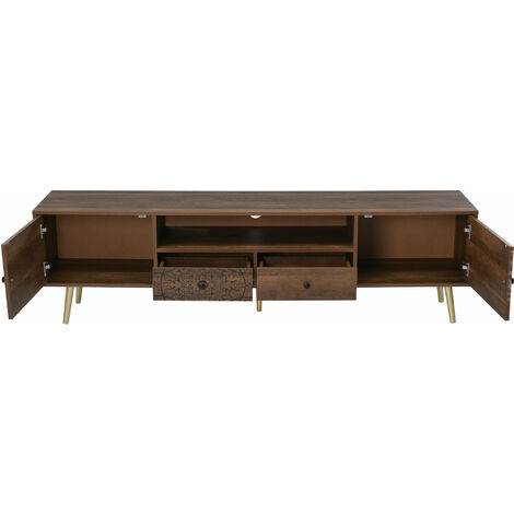 EOBfurniture TV Lowboard 240cm Nussfarbe - Passend Für 75 Zoll Fernseher Mit Lamellentüren