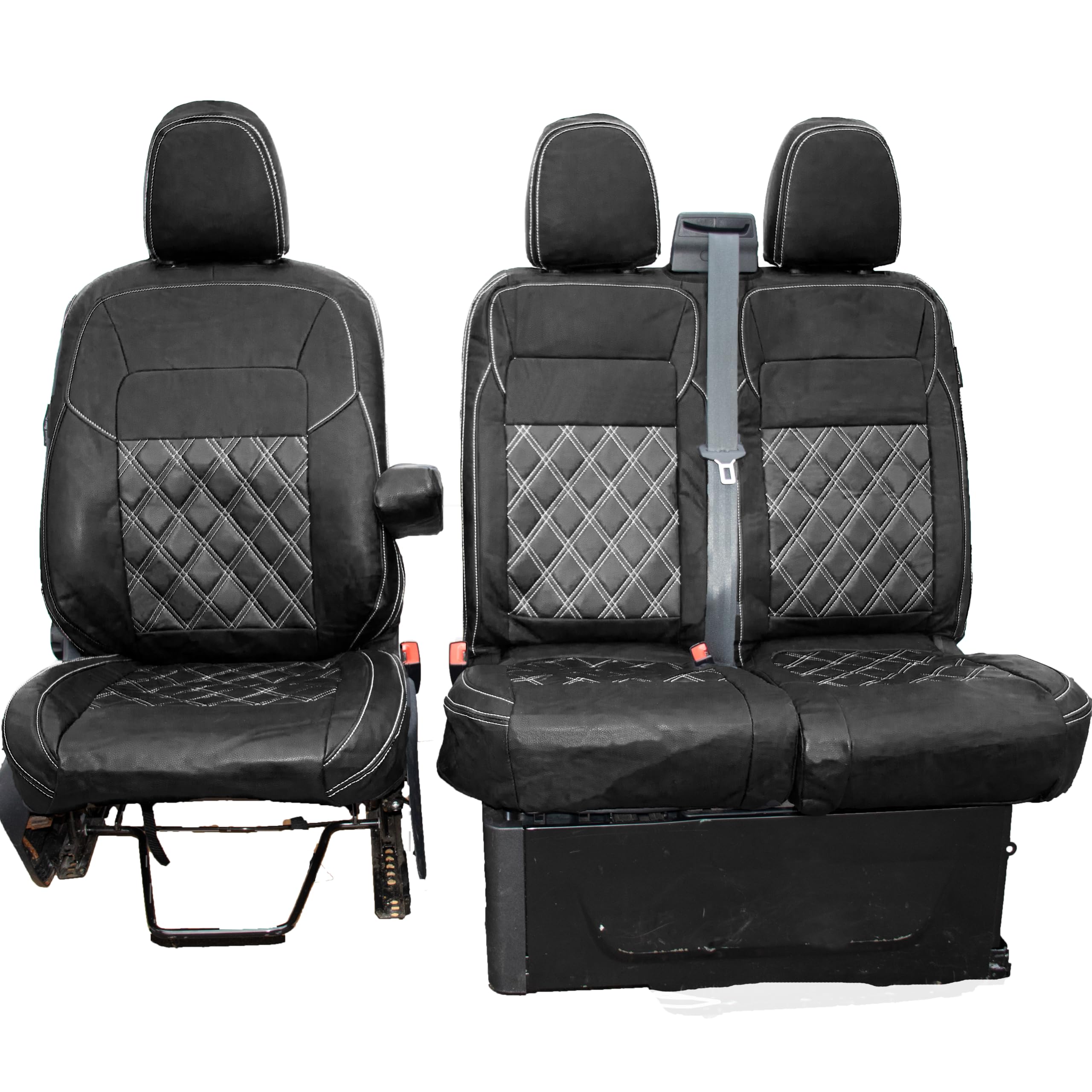 Ford Transit Custom-Fahrer, hier kommen die perfekten Sitzbezüge für euren Van! Speziell designed für die Modelle von 2013 bis 2025 - und das für alle 5 Sitze! Aus hochwertigem PU-Leder gefertigt, das wasser- und schmutzabweisend ist sowie abriebfest. Die Schichtung aus Memory-Schaum, atmungsaktivem Vliesstoff und Stretch-Baumwolle sorgt für maximalen Komfort. Mit 5 kg Gewicht sind die Bezüge robust aber nicht zu schwer. Das Anti-Rutsch-Futter hält alles an Ort und Stelle und beeinträchtigt nicht die Airbag-Funktion. Egal ob Sommer oder Winter - die atmungsaktive Eigenschaft sorgt für angenehmes Klima und die Sitzheizung funktioniert einwandfrei. Perfekt wenn du Kinder oder Haustiere hast - Flecken einfach mit Seifenwasser und einem Lappen wegwischen. Die Installation dauert nur etwa 20 Minuten und schon sieht dein Auto-Innenraum aus wie neu! So schützt du deine originalen Sitze und erhöhst sogar den Wiederverkaufswert. Wenn du unsicher bist, ob's passt - schick uns einfach eine Mail mit Modell und Baujahr!