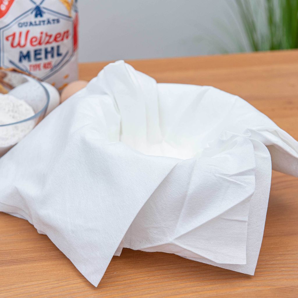 Hey, dieses Passiertuch ist ein echter Küchenklassiker! Aus natürlichem gazeartigen Rohleinen gefertigt - gebleicht und damit super hygienisch. Mit 80x80 cm Größe hast du genug Platz zum Passieren von Suppen, Saucen oder anderen Speisen. Die Schnittkanten sind sauber gesäumt, das Tuch franst nicht aus. Und das Beste: Es ist kochfest! Du kannst es also bedenkenlos in heißen Flüssigkeiten verwenden. Mit praktischem Aufhänger - einfach nach Gebrauch aufhängen und trocknen lassen. Ein hochwertiges deutsches Fabrikat, das seine Qualität beweist. Ob für professionelle Köche oder Hobby-Kochbegeisterte - dieses Passiertuch ist unverzichtbar in jeder Küche. Vielseitig einsetzbar, nicht nur zum Passieren, sondern auch zum Abseihen oder Auspressen. Einfach, effektiv und langlebig - genau das, was man von einem guten Küchenhelfer erwartet! Waschbar und immer wieder verwendbar - umweltfreundlich und praktisch zugleich.