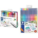 Kreative aufgepasst! Diese STAEDTLER triplus color Filzstifte im hübschen Pastell-Set sind einfach nur traumhaft. Mit 6 wunderschönen Pastellfarben kannst du deine Bullet Journals, Handlettering-Projekte oder Skizzen aufpeppen. Der ergonomische Dreikantschaft liegt super angenehm in der Hand und ermüdet nicht so schnell - perfekt für lange Mal-Sessions! Die stabile Spitze mit 1mm Linienbreite ist eindrucksicher und liefert gleichmäßige Linien. Die Tinte auf Wasserbasis ist leicht auswaschbar aus den meisten Textilien - praktisch wenn mal was daneben geht. Das geniale Feature: DRY SAFE - die Stifte können tagelang offen liegen ohne auszutrocknen. Und der PP-Schaft garantiert eine lange Lebensdauer. Kommt in der stabilen, aufstellbaren STAEDTLER-Box - super für unterwegs oder zur Aufbewahrung. Übrigens: STAEDTLER produziert nachhaltig mit Upcycled Wood! Einfach ein tolles Set für alle die gerne kreativ sind.