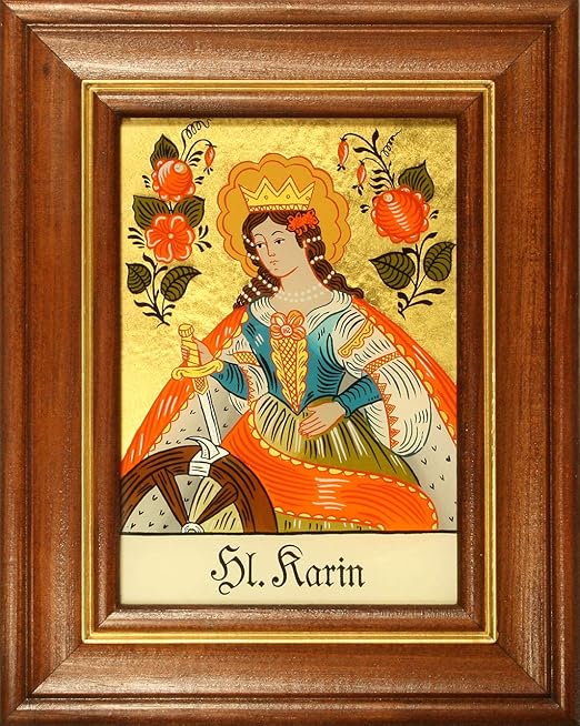 Hinterglasbild Hl. Katrin Mit Holzrahmen - Handbemaltes Patronatsbild 12,5x16cm Mit 24 Karat Blattgold