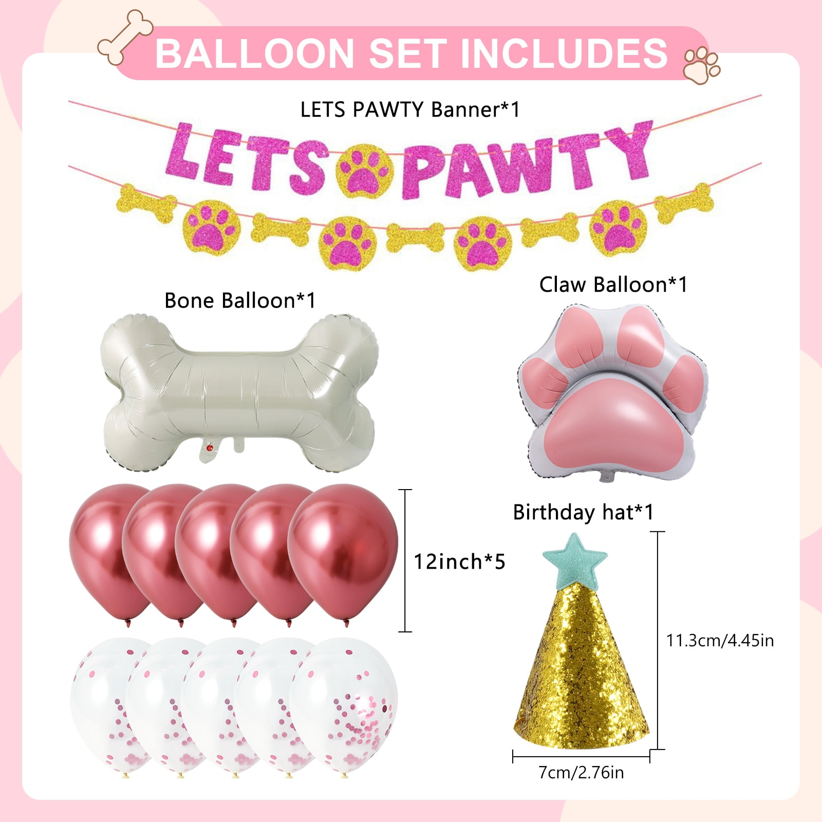Werfe die perfekte Party für deinen vierbeinigen Freund! Dieses entzückende Luftballons-Banner mit süßen Welpen-Motiven verwandelt jede Feier in ein unvergessliches Erlebnis. Mit 40,6cm Größe ein echter Hingucker für Hundegeburtstage, Babypartys mit Haustierthema oder einfach nur zur Dekoration. Aus strapazierfähigem Mylar-Material das lange hält. Die niedlichen Pfotenabdrücke und verspielten Designs begeistern Gäste jeden Alters. Einfach aufhängen und sofort ist Partystimmung garantiert. Perfekt für Fotos und um deinem pelzigen Freund eine gebührende Feier zu bereiten. Lass die Party beginnen!