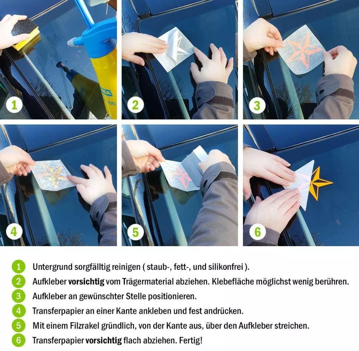 Mit praktischer Verklebehilfe und Montageanleitung. Einfach anzubringen, haftet super auf glatten Oberflächen.