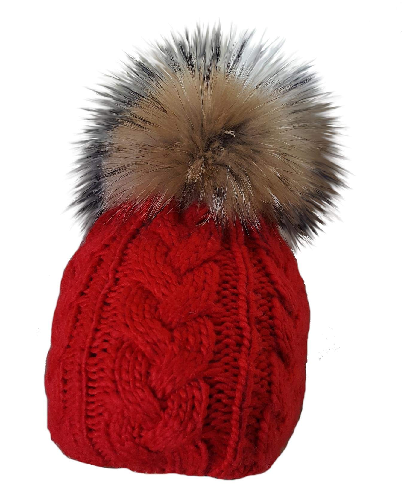 Wintermütze Mit Echtem Waschbär Pelz Bommel - Super Weiche Pudelmütze Für Damen & Mädchen