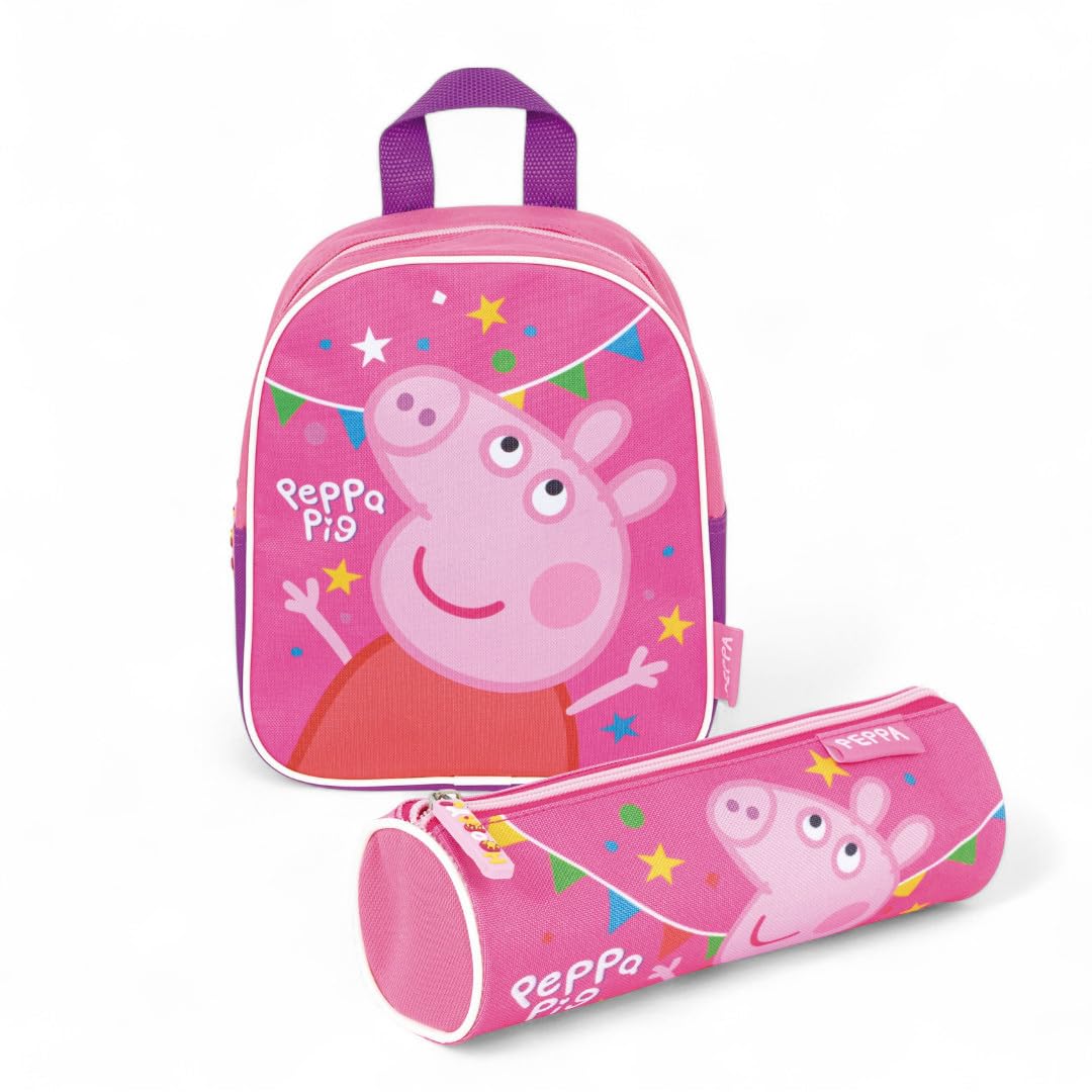 Peppa Wutz Kindergarten Rucksack Set - Mit Federmäppchen 24x20x10cm | Für Vorschule & Kindergarten