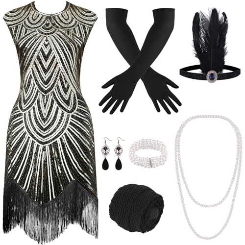 Timewarp in die goldenen 20er! Dieser wunderschöne Schal im Flapper-Stil verleiht jedem Outfit sofort vintage Charme. Besetzt mit funkelnden Pailletten und eleganten Perlen - einfach umwerfend! Aus leichtem Netzmaterial gefertigt, ist er angenehm zu tragen und atmungsaktiv. Der Metallhakenverschluss sorgt für sicheren Sitz am Hals. Perfekt um ärmellose Kleider zu ergänzen oder als eleganter Umhang für besondere Anlässe. In Einheitsgröße passt er fast jeder Frau. Ob für Hochzeiten, Galas, Mottopartys oder romantische Abendessen - mit diesem Schal bist du der absolute Hingucker! Sieht aus wie aus einer Great Gatsby Verfilmung - einfach traumhaft schön!