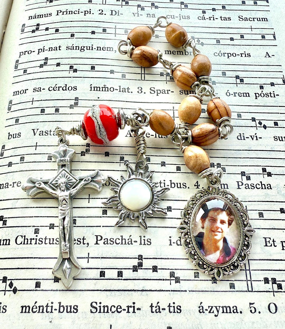 Ein wunderschöner Rosenkranz, der dem seligen Carlo Acutis gewidmet ist - dem modernen Jugendlichen, der Glaube und Technik vereinte. Aus braunem Holz gefertigt, strahlt er eine warme und natürliche Ausstrahlung aus.