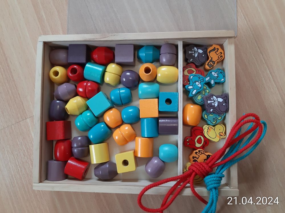 Spielerisch lernen war noch nie so schön! Dieses bunte Perlen-Set fördert die Feinmotorik und Kreativität deines Kindes.\\n\\nKomplett-Set im Überblick:\\n• 18 bunte Obst- und Lebensmittel-Perlen\\n• 8 doppelseitige Vorlagenkarten\\n• 1 süße Raupenkette\\n• 1 praktische Aufbewahrungstasche\\n• Maße: 24,5x18x4 cm\\n\\nPädagogische Vorteile:\\n• Fördert Feinmotorik und Hand-Auge-Koordination\\n• Unterstützt kognitive Entwicklung\\n• Lehrt Farben und Formen\\n• Trainiert Geduld und Konzentration\\n\\nSicherheit first:\\n• Aus natürlichem Holz\\n• Splitterfreie Kanten\\n• Ungiftige Farben\\n• Weiche, strapazierfähige Schnüre\\n\\nAltersempfehlung:\\n• Ab 3 Jahren geeignet\\n• Für Jungen und Mädchen\\n• Ideal für Kindergarten und Vorschule\\n\\nPerfekt für:\\n• Zu Hause und unterwegs\\n• Kindergarten und Therapie\\n• Geburtstagsgeschenke\\n• Entwicklungsförderung\\n\\nFördern und fordern - mit Spaß am Lernen!