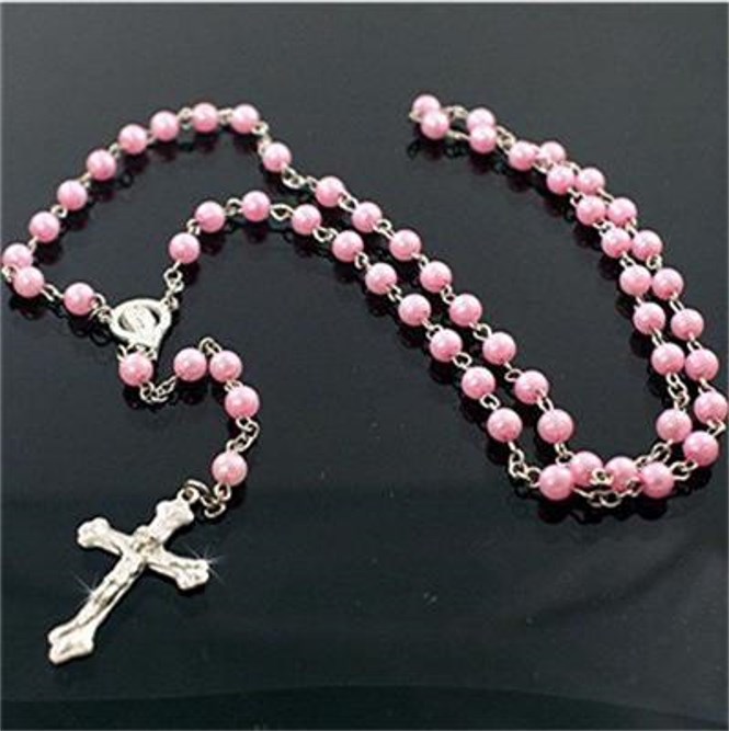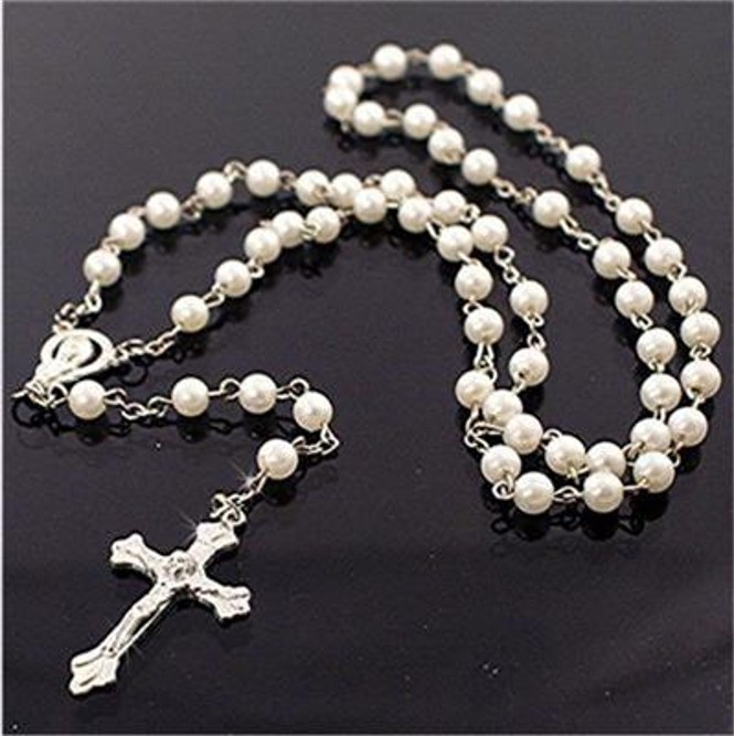 Weiße Rosenkranz Perlenkette - Katholische Halskette Mit Kreuz & Medaille