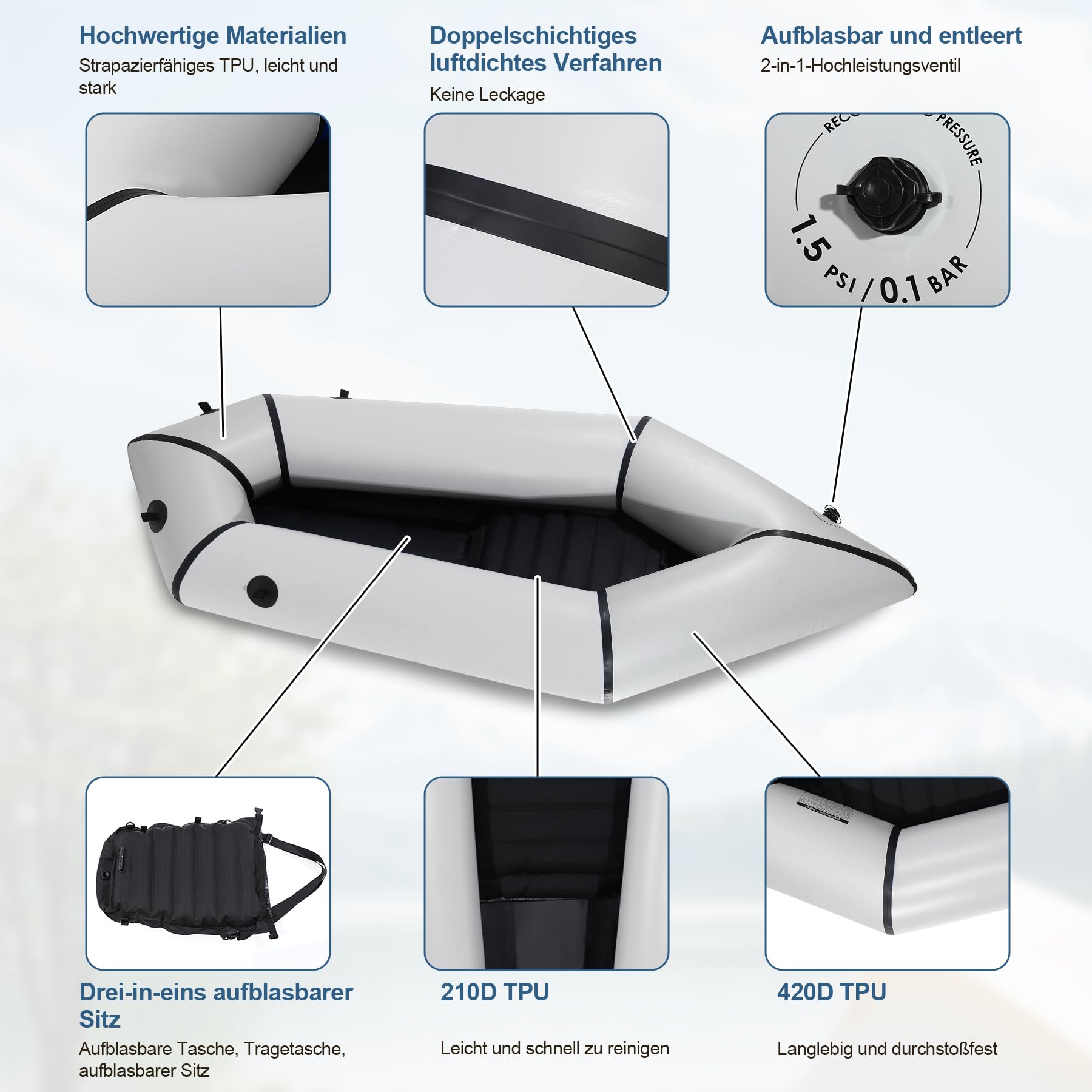 TPU Schlauchboot 1 Person - Aufblasbares Kajak 210cm Für Angeln & Abenteuer