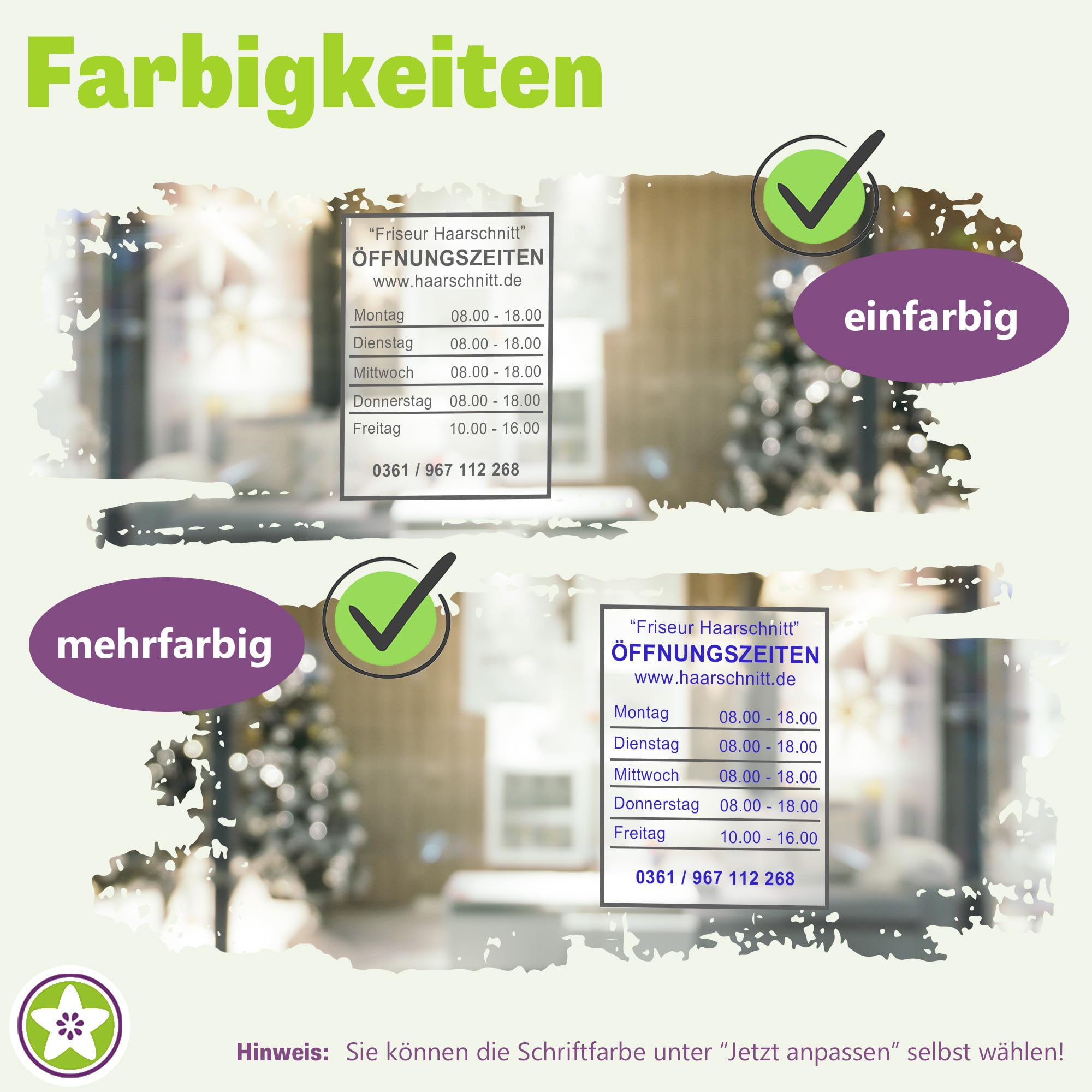 KIWISTAR Öffnungszeiten Aufkleber - Personalisierbar, Blickdicht, Milchglas-Optik