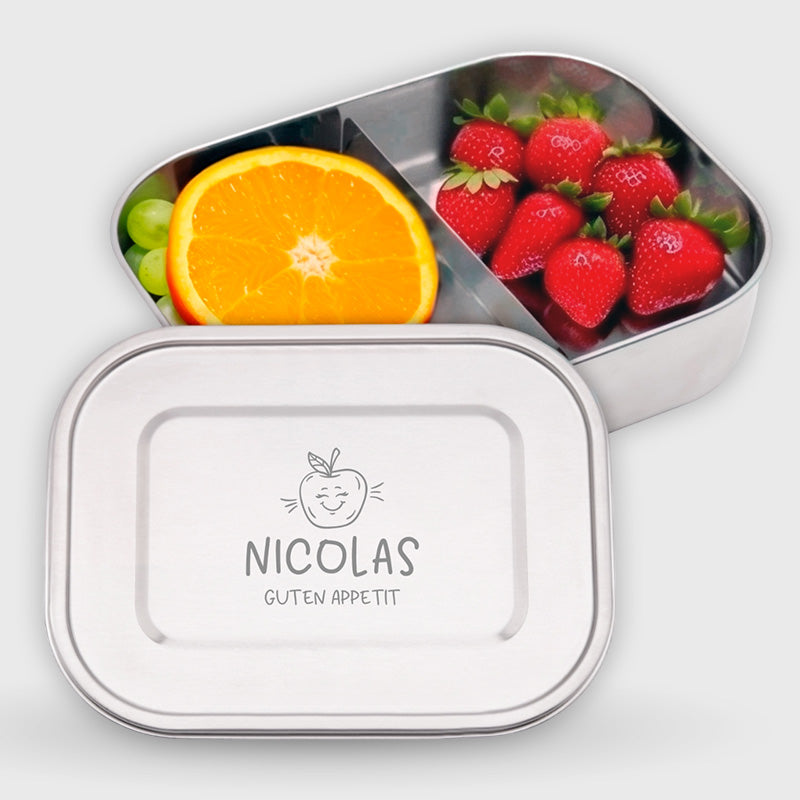 Wie süß ist denn das? Eine personalisierte Brotdose mit dem Namen deines Kindes! Diese robuste Brotdose aus Edelstahl mit Bambusdeckel ist nicht nur super praktisch, sondern sieht auch noch total niedlich aus. Einfach den gewünschten Namen und das Design auswählen und schon bekommst du eine einzigartige Brotdose, die dein Kind lieben wird. Perfekt für die Schule, den Kindergarten oder unterwegs. Der Edelstahl-Korpus ist spülmaschinenfest und der Bambusdeckel lässt sich einfach mit einem feuchten Tuch abwischen. Mit Trennfach für verschiedene Leckereien - so vermischt sich nichts. Ein tolles Geschenk, das garantiert für strahlende Augen sorgt! Und keine Sorge - Rechnungen liegen nicht im Paket bei, falls es ein Geschenk sein soll.