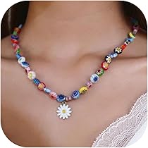 EORPAVU Personalisierte Halskette Damen - Bunte Perlen Mit Buchstaben-Anhänger
