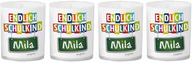 Wie süß ist das denn? Vier personalisierte Teelichter zur Einschulung mit dem Namen deines Schulkindes! Auf jeder Kerze steht \\\Endlich Schulkind\\\ und der Name - wie mit Kreide auf eine Tafel geschrieben.