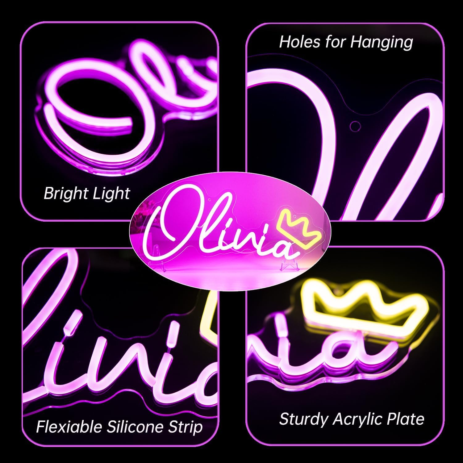 Kreiere dein eigenes Leuchtkunstwerk! Dieses personalisierte LED-Neonschild kannst du komplett nach deinen Wünschen gestalten: Farbe, Größe, Schriftart, Text - alles individuell. Hergestellt aus flexiblen LED-Neonstreifen und verstärkter Acryl-Rückwand. Superhelle Beleuchtung, Helligkeit stufenlos einstellbar, optional mit Farbwechsel-Funktion (RGB). Einfache Installation - aufhängen oder anschrauben, Stecker in die Dose und fertig! Perfekt fürs Zimmer, Büro, Bar, Geschäft oder als besonderes Geschenk. Auch für Firmenlogos geeignet. Verschiedene Aufhängungsoptionen - mit Ketten oder direkt an der Wand. Mach deine Wände zum echten Hingucker! Dein persönliches Statement in Licht.