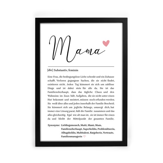 Personalisiertes Mama Poster Mit Holzrahmen - Wanddeko Für Muttertag & Geburtstag