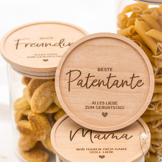 Ein Geschenk von Herzen! Dieses personalisierte Vorratsglas mit Gravur 'Lieblingsplätzchen' wird zum absoluten Liebling in jeder Küche. 530ml Fassungsvermögen - perfekt für Kekse, Nüsse oder kleine Überraschungen. Mit Buchenholzdeckel - luftdichter Verschluss für frische Inhalte. Spülmaschinenfest - einfach zu reinigen. Handgefertigt in deutscher Familienmanufaktur - mit Liebe zum Detail. Perfekt für Weihnachten, Geburtstage oder als Dankeschön. Füll es mit selbstgebackenen Plätzchen - ein Geschenk das doppelt Freude macht. Nachhaltig und plastikfrei verpackt. Mach deinen Liebsten eine besondere Freude - bestell dieses persönliche Vorratsglas!