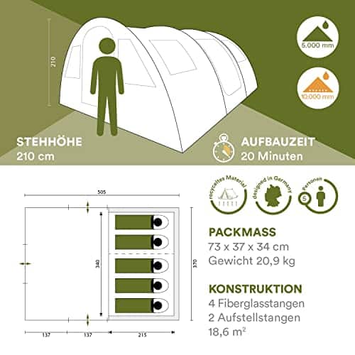 TAMBU ABAKASA 5 Personen Tunnelzelt - Familienzelt Mit Stehhöhe & Recyceltem Material