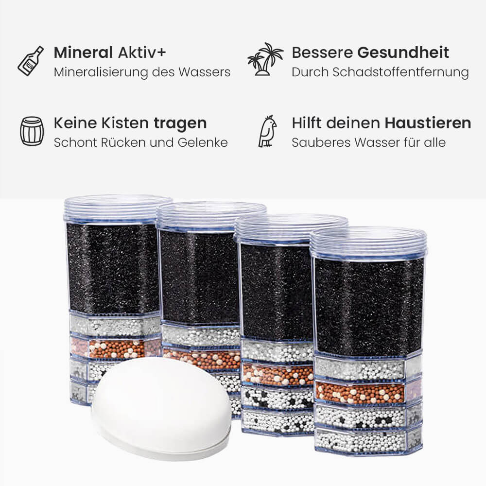 Leitungswasser schmeckt langweilig? Mit dem BWT VIDA Petrol Wasserfilter wird's knackig frisch! Der Filter holt Kalk, Chlor und sogar Blei raus - und fügt Magnesium hinzu. Das ist gut für deinen Körper und macht weniger müde. Inklusive 13 Filterkartuschen für ein ganzes Jahr! Passt super in die Kühlschranktür und der Wechsel ist easy. Schmeckt viel besser als vorher, ob pur oder im Tee. Dein Wasserkocher und die Kaffeemaschine freuen sich auch, weil kein Kalk mehr drin ist. Und hey - du tust was für die Umwelt, weil du keine Plastikflaschen mehr kaufen musst. Einfach Hahn auf, Wasser marsch und genießen!
