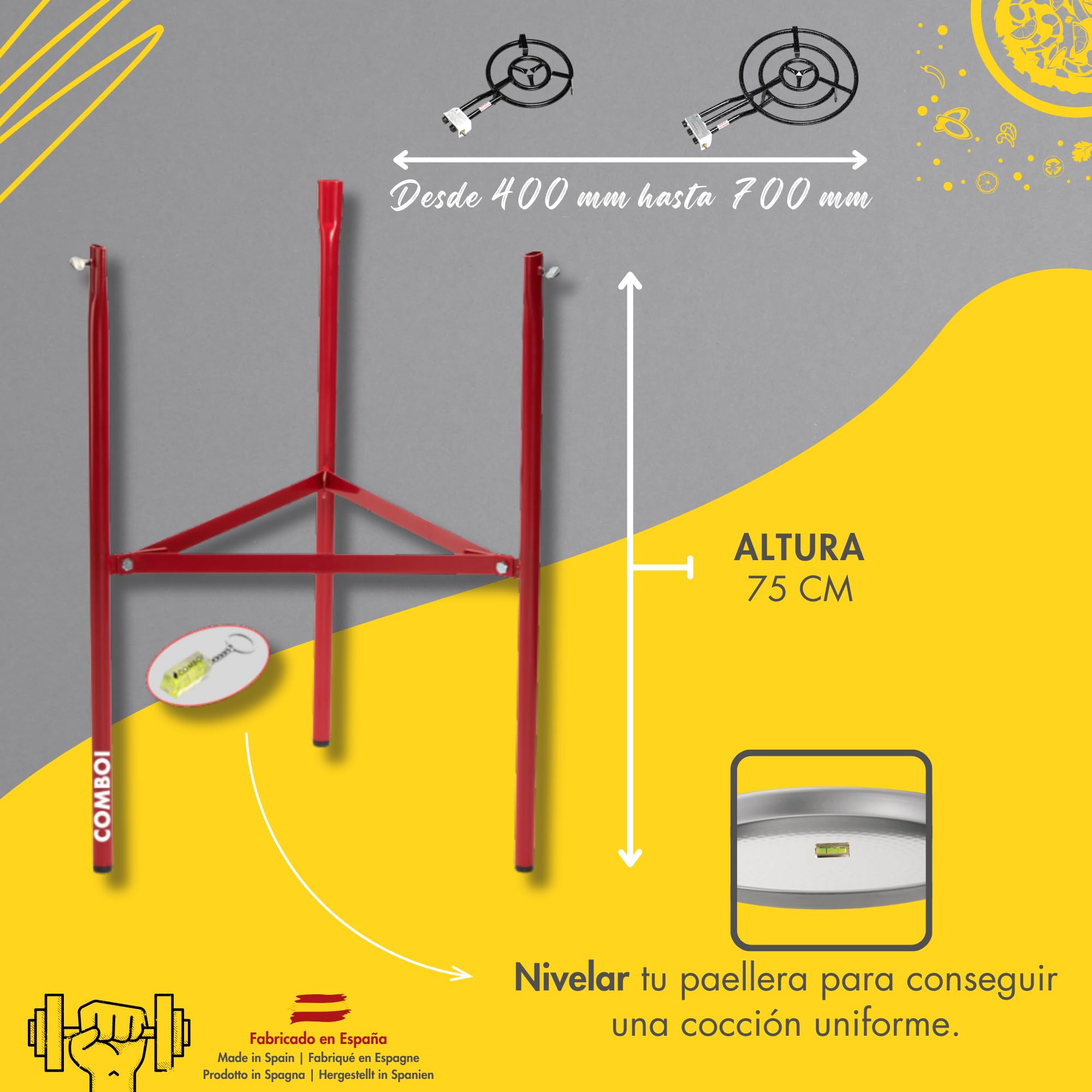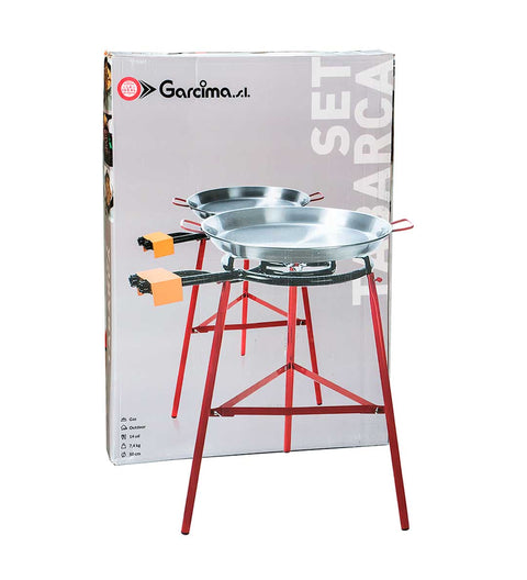 Bist du bereit für authentische spanische Paella? Dieses COMBOI 500 Set hat alles, was du brauchst! Komplett-Set inklusive: Gasbrenner mit 50cm Durchmesser (kompatibel mit Butan und Propan), Paella-Pfanne aus poliertem Stahl mit 60cm Durchmesser (für bis zu 19 Portionen!), verstellbares Stativ für perfekte Stabilität, Gasregler für Spanien, zugelassener Gasschlauch, Wasserwaage zum Nivellieren und eine coole Kochschürze. Made in Spain - original spanische Qualität! Die Pfanne aus poliertem Stahl sorgt für den traditionellen Paella-Geschmack. Das verstellbare Stativ sorgt für sicheren Stand auf jedem Untergrund. Inklusive digitalem Rezeptbuch 'Reis in PAELLA' per QR-Code - lerne die Geheimnisse der perfekten Paella! Perfekt für Familienfeiern, Gartenpartys oder einfach für alle, die die spanische Küche lieben. Einfach aufbauen, Gas anschließen und loskochen! Ob du Paella-Profi bist oder es zum ersten Mal versuchst - mit diesem Set wird's ein Erfolg. Bereit, deine Gäste zu beeindrucken?