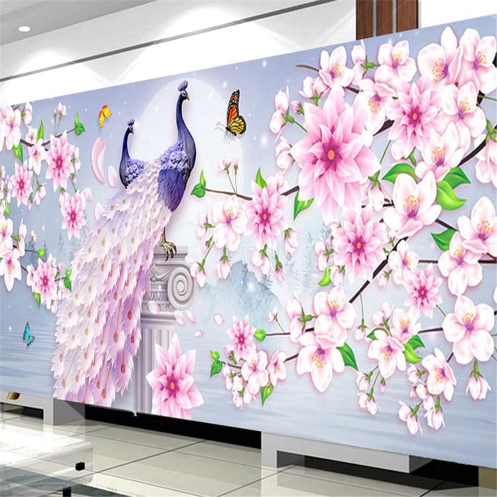 5D Diamant Malerei Pfau - Runde DIY Malerei 120x43cm Dekoration