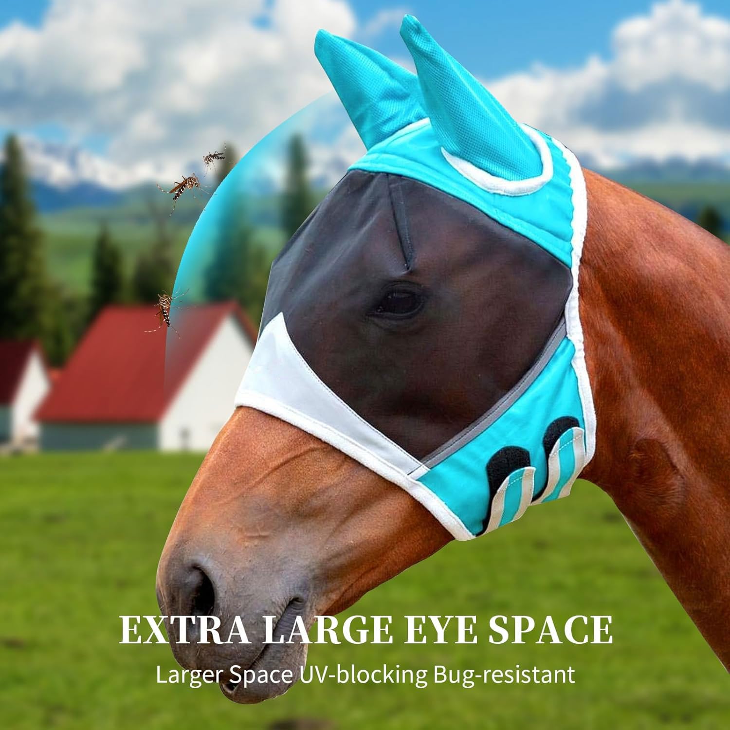 Pferde Fliegenmaske Mit Ohrenschutz - Atmungsaktiv, UV-Schutz, Größe L (105x52x28 Cm)