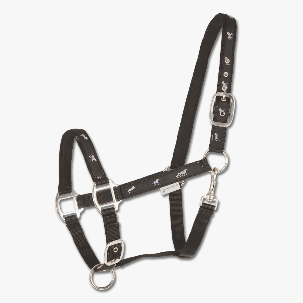 Stylisches und bequemes Halfter für dein Pferd! Das Waldhausen Halfter Paris in der edlen Cappuccino/Schwarz Kombination sieht nicht nur gut aus, sondern bietet auch maximalen Tragekomfort. Mit dem Satin-Überzug und der Kunstfell-Unterlage an Genick, Nase und Backen liegt es weich auf der Pferdehaut auf und verhindert so Druckstellen. Verstellbar am Kinnriemen und beidseitig am Genickstück passt es sich optimal an dein Pferd an. Die dunklen Beschläge, der praktische Schnappkarabiner und das silberne Waldhausen-Logo runden das hochwertige Design ab. Perfekt für den täglichen Gebrauch im Stall, für Ausritte oder Shows. Dein Pferd wird sich in diesem Halfter wohlfühlen und du kannst es mit gutem Gewissen verwenden. Ein Qualitätsprodukt von Waldhausen, das lange hält und deinem Pferd den Komfort bietet, den es verdient. Einfach anlegen und losreiten!