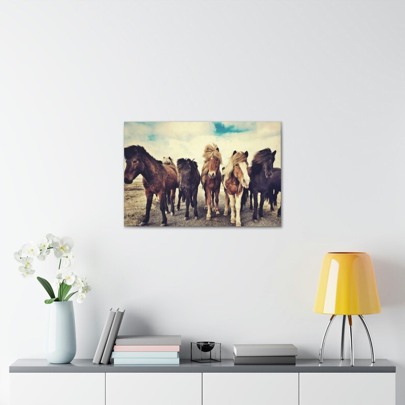 Wandbild Pferdeherde Auf Leinwand - DREI Laufende Pferde Im Staub 100x57cm