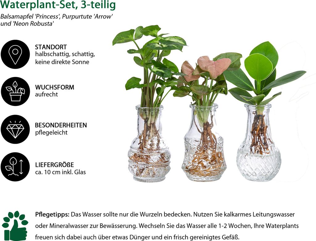 Grünes Wohlfühlklima für dein Bad! Dieses 3er-Pflanzenset von Dehner bringt Frische und natürliche Luftreinigung in dein Badezimmer. Enthalten sind Balsamapfel, Bergpalme und Streifenfarn – alles Pflanzen, die mit höherer Luftfeuchtigkeit bestens zurechtkommen. Lieferung in 12-cm-Töpfen, Höhe 25-40 cm. Mit praktischem Wasserstandsanzeiger für die perfekte Bewässerung. Diese Pflanzen sehen nicht nur gut aus, sondern reduzieren auch Schimmelbildung und sorgen für ein besseres Raumklima. Einfache Pflege, großer Effekt – dein Bad wird zur Wellness-Oase!