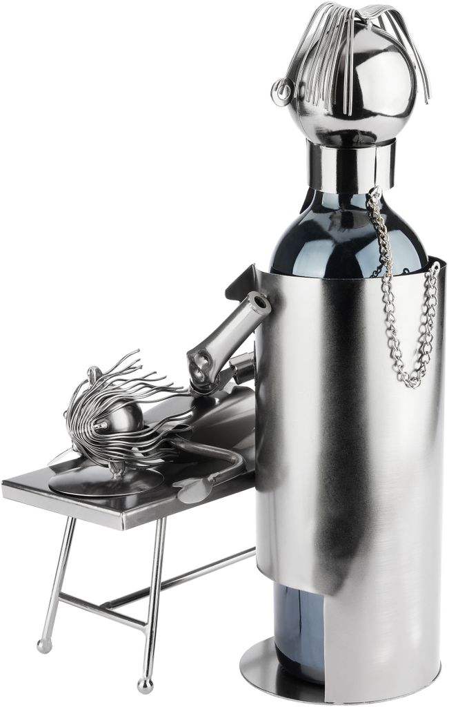 Auf der Suche nach einem total originellen Geschenk? Dieser handgefertigte Weinflaschenhalter von BRUBAKER zeigt einen Masseur bei der Arbeit - ein absoluter Hingucker! Aus Metall kunstvoll geschweißt, wird jedes Stück zum Unikat. Mit 17,8x19,8x19,9cm und 738g ist er stabil aber nicht zu schwer. Perfekt für Physiotherapeuten, Masseure oder einfach Weinliebhaber mit Humor. Inklusive Geschenkkarte - ideal für Geburtstage, Weihnachten oder als Dankeschön. Die Weinflasche ist nicht dabei, aber die wird ja schnell besorgt! Ein Geschenk das garantiert für Gesprächsstoff sorgt und jeden Raum aufwertet. Hol dir dieses besondere Stück und mach jemandem eine riesige Freude!