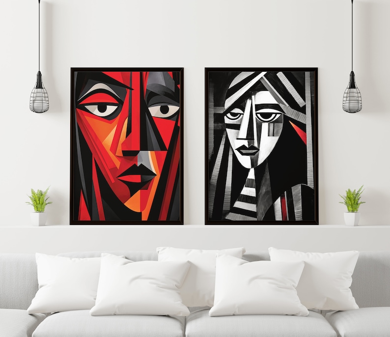 Picasso Abstrakte Kunst Leinwandbild 40x60cm - Schwarz Weiß Minimalistisch 2-teilig