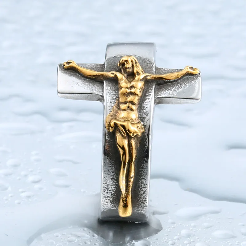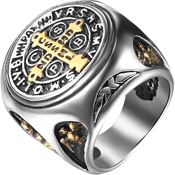 PikaLF Jesus-Kreuzring Für Männer - Mittelalter Design, Mit Zirkonia, Christlicher Schmuck