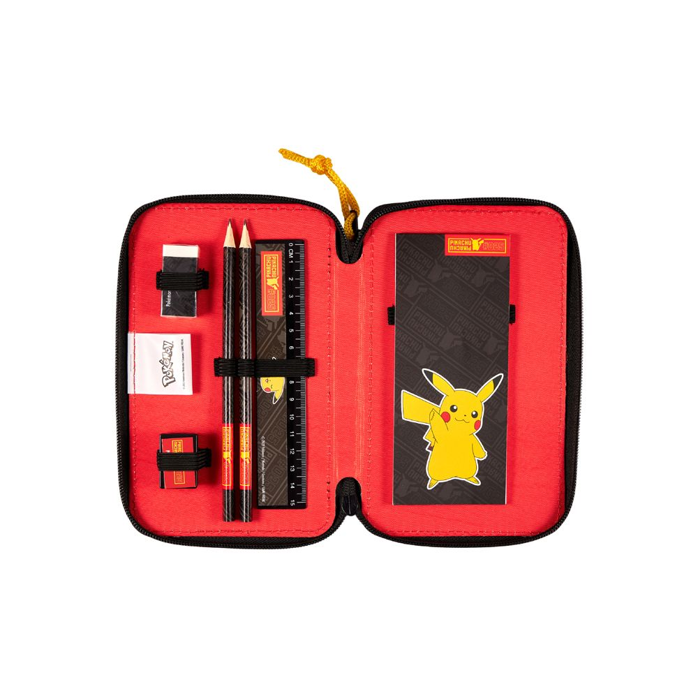 Oh, wie cool! Dieses Pokemon Pikachu Federmäppchen wird jedes Kinderaugen zum Leuchten bringen! In knalligem Gelb und Rot mit dem beliebten Elektro-Maus-Design ist es der Hit in jeder Schultasche. Mit den elastischen Schlaufen innen bleiben alle Stifte, Lineale und Radiergummis sicher an ihrem Platz.