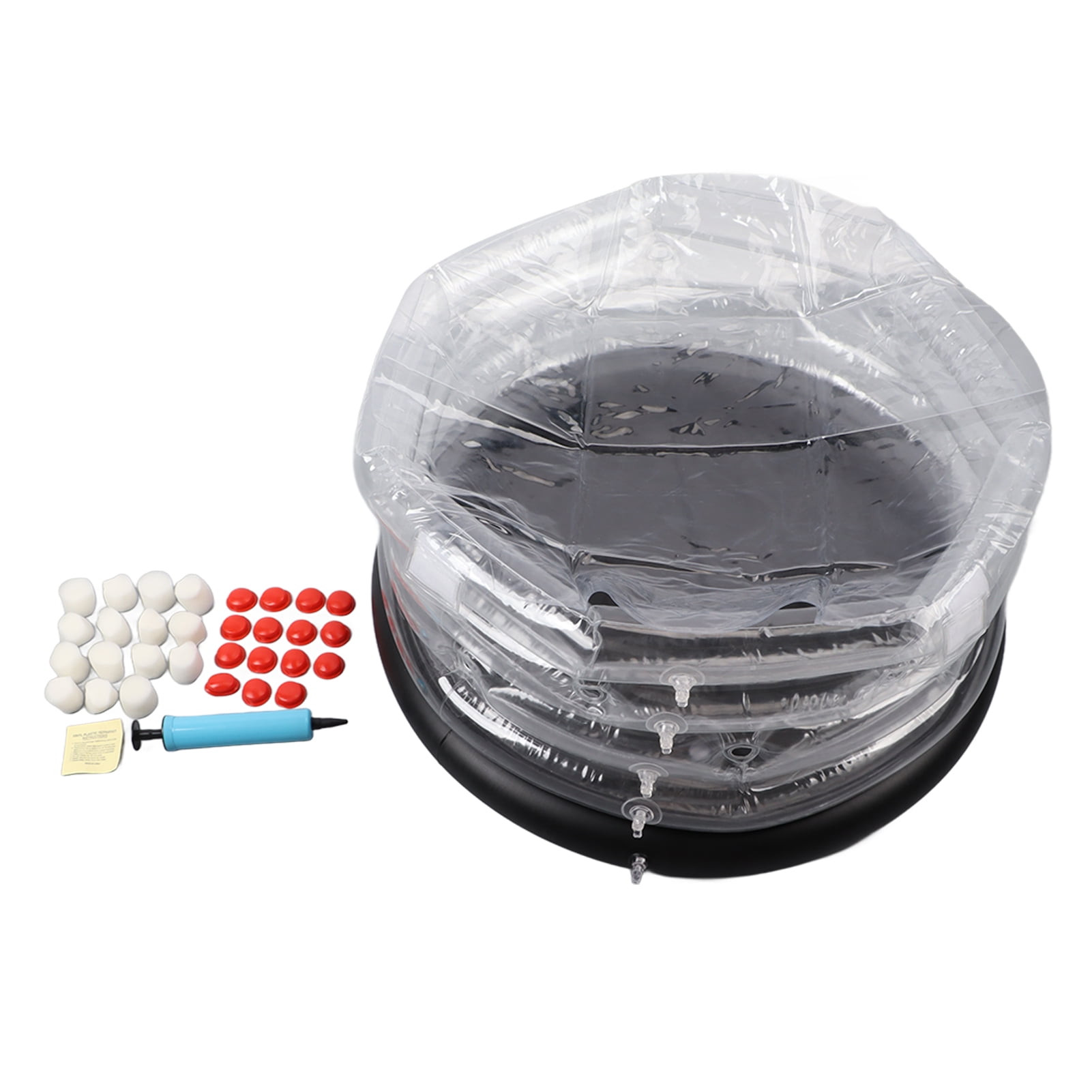 Die Box ist 45x45x30cm groß und bietet perfekte Bedingungen für verschiedene Pilzarten. Durchsichtiges PVC ermöglicht dir, das Wachstum immer im Blick zu behalten. Einfach aufblasen, befüllen und loslegen!