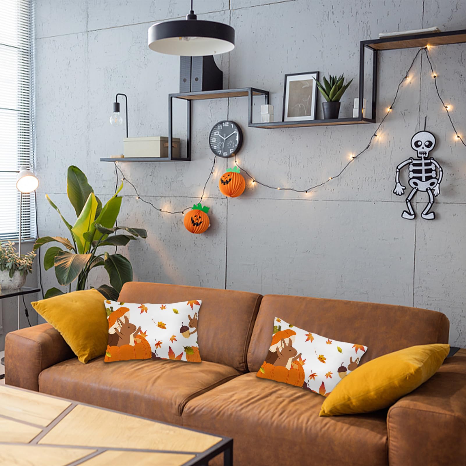 Herbst Kissenbezug 30x50cm Kürbis Ahornblatt - Plüsch Deko Kissen Für Sofa & Wohnzimmer