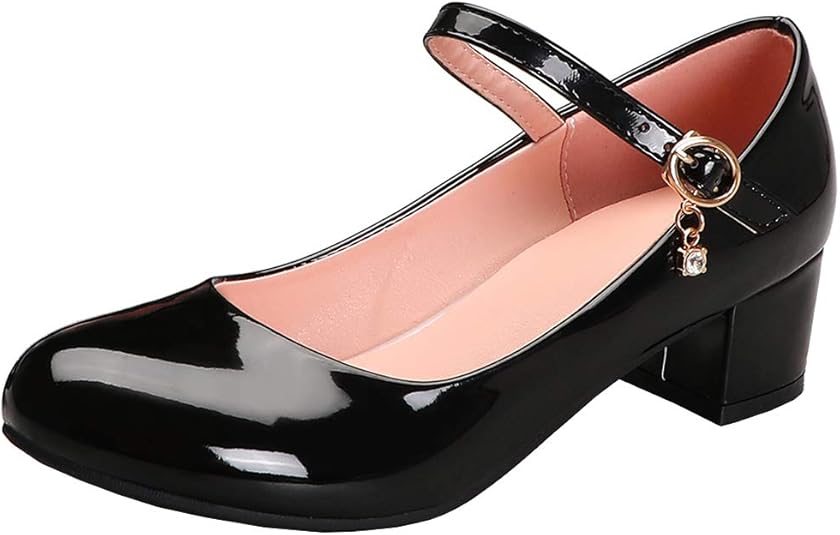 MISSUIT Damen Mary Jane Pumps - Plateau High Heels, Blockabsatz, Lack-Optik