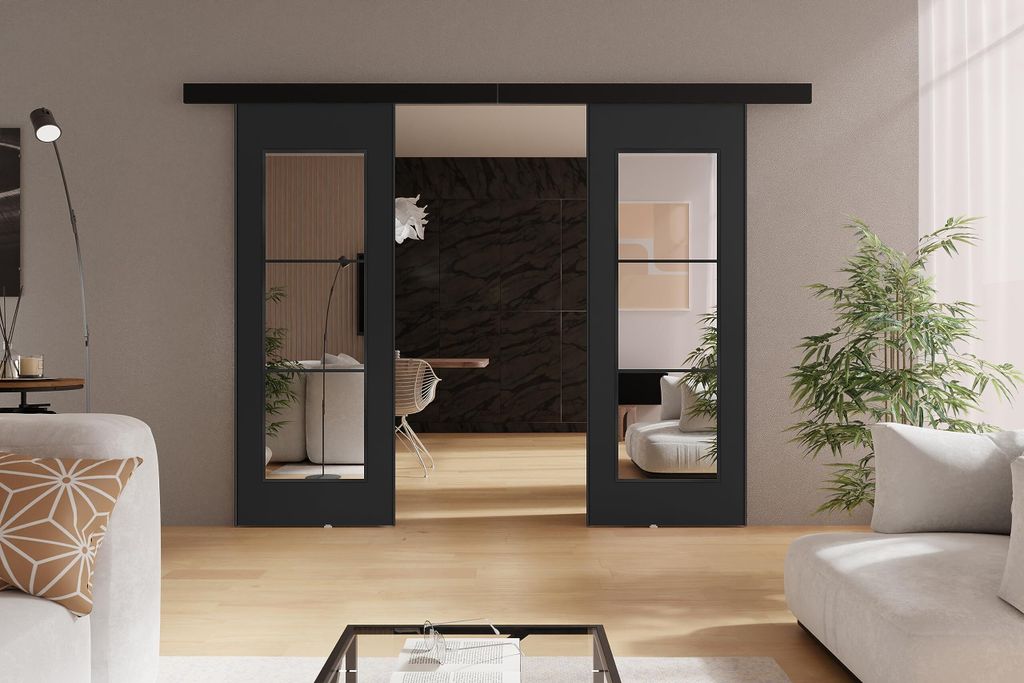 KIER FURNITURE Schiebetür Set - Platzsparende Innentür 96cm In Weiß & Eiche